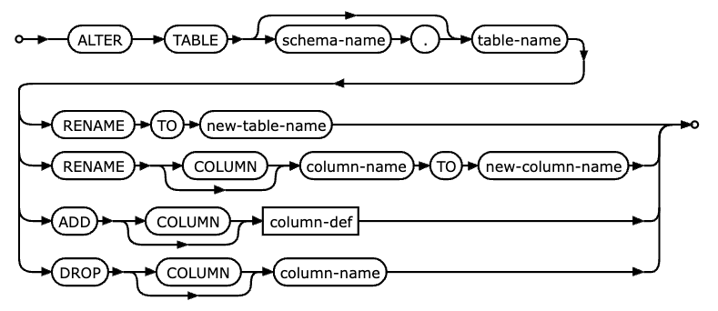 아무튼 위 사진을 보면 ALTER TABLE 을 통해 수정할 수 있는 기능이 몇 개 있는데 RENAME , ADD , DROP 만 사용이 가능함