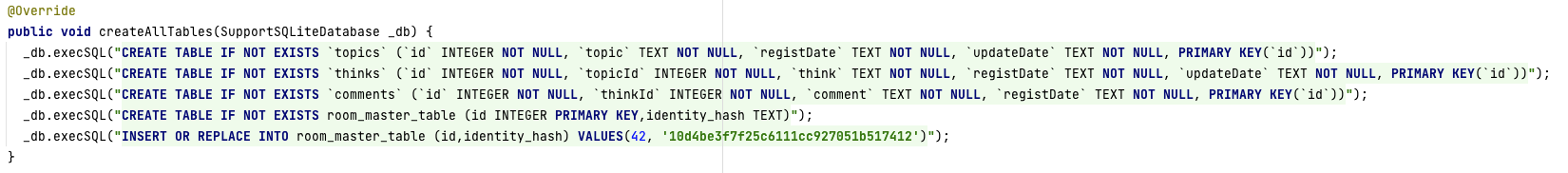 컴파일을 돌린 후, 생긴 Database 관련 파일에서 쿼리를 확인해봐라!